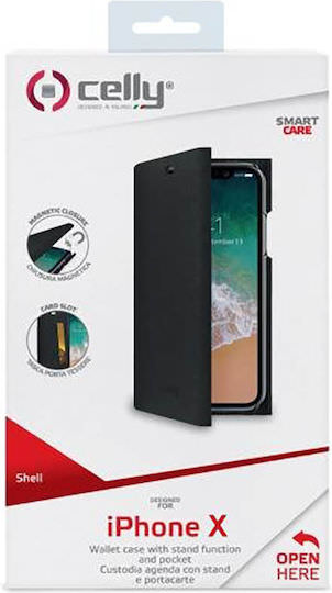Celly Shell Wallet Δερματίνης Μαύρο (iPhone X / Xs)