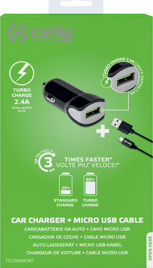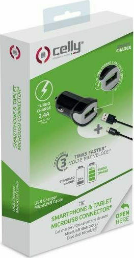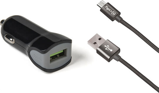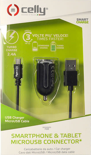 Celly Turbo Φορτιστής Αυτοκινήτου 2.4A με μία Θύρα: 1xUSB μαζί με Καλώδιο Micro-USB Μαύρο Χρώμα