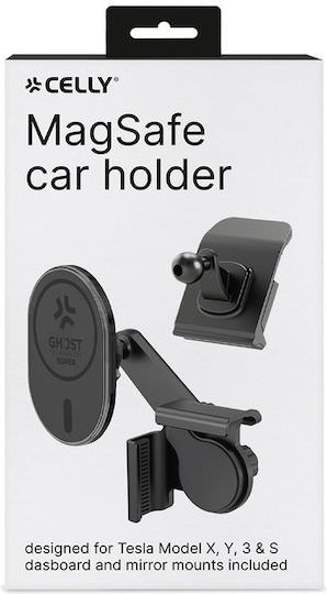 Η βάση smartphone Celly Ghost Magsafe Tesla έχει σχεδιαστεί ειδικά για χρήση σε Tesla Model X, Y, 3 και S. Είναι μια καθολική βάση που μπορεί να στερεωθεί στον αεραγωγό με ένα κλιπ ή να κουμπωθεί στη γωνία της οθόνης Tesla με τα κλιπ. Το Ghost Magsafe είναι συμβατό με τη μαγνητική ευθυγράμμιση MagSafe των πιο πρόσφατων μοντέλων iPhone.