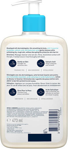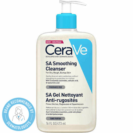 CeraVe SA Smoothing Cleanser για πρόσωπο και σώμα, κατάλληλο για καθημερινή χρήση. Ένα τζελ καθαρισμού που βελτιώνει το τραχύ και ανομοιόμορφο δέρμα, δίνοντάς του πιο λεία υφή.