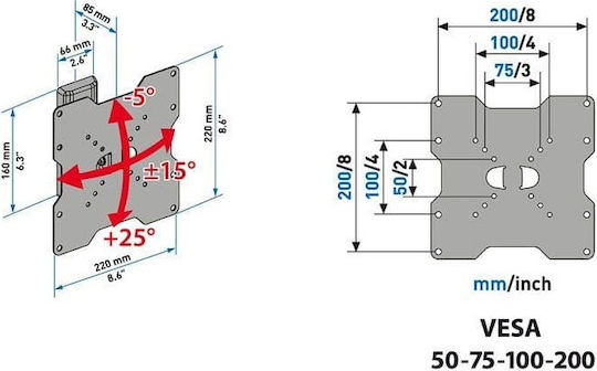 – Vesa Mount: 100 x 100, 200 x 100, 200 x 200, 50 x 50, 75 x 75