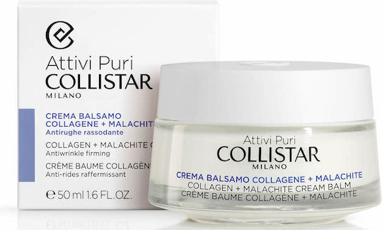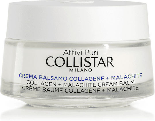 Το Collistar Pure Actives Collagen + Malachite Cream Balm είναι κρέμα προσώπου που περιέχει κολλαγόνο και μαλαχίτη. Βοηθάει στην σύσφιξη και την δράση κατά των ρυτίδων, αφού ο μαλαχίτης εμποδίζει τη γλυκοζυλίωση και σε συνδυασμό με τα φυτικής προέλευσης αμινοξέα κολλαγόνου συσφίγγει και δρα κατά των ρυτίδων.