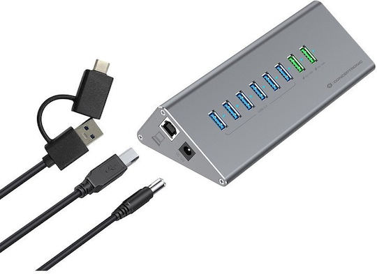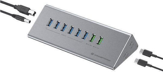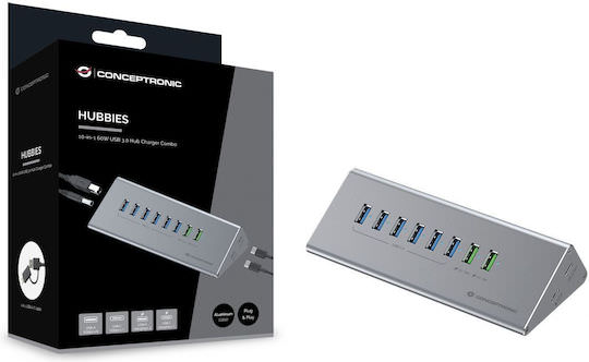 Conceptronic USB 3.0 Hub 10 Θυρών με σύνδεση USB-C και Εξωτερική Παροχή Ρεύματος Γκρι