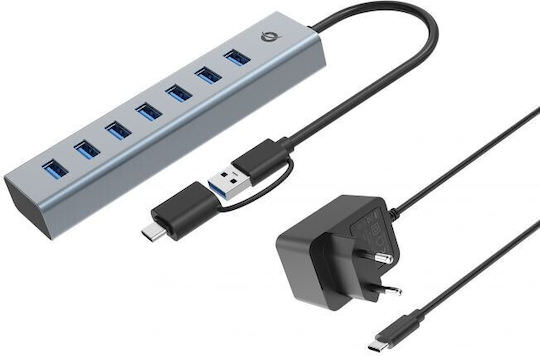 Conceptronic USB 3.0 Hub 7 Θυρών με σύνδεση USB-A / USB-C & Θύρα Φόρτισης Ασημί