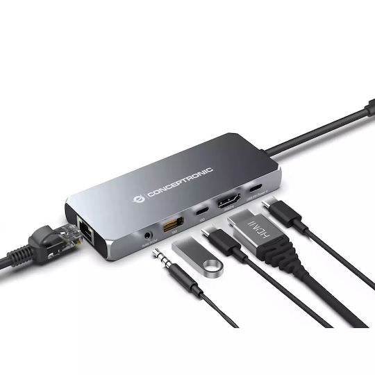 Conceptronic USB-C Docking Station με HDMI 4K PD Ethernet Γκρι (DONN22G)