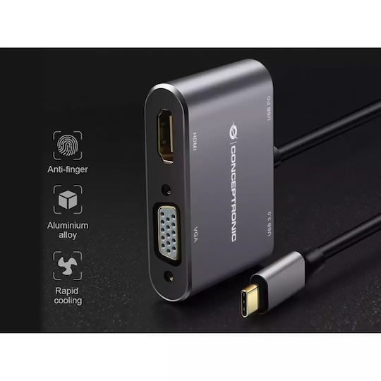 Conceptronic USB-C Docking Station με HDMI 4K PD Γκρι (DONN16G)