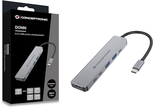 Conceptronic USB-C Docking Station με HDMI 4K PD Γκρι (DONN33G)