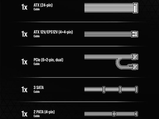 – 4x καλώδια τροφοδοσίας κάρτας γραφικών PCIe 6+2, για να εκμεταλλευτείς την SLI ή Crossfire δυνατότητα του υπολογιστή.