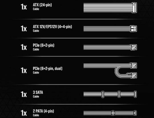 – 4x καλώδια τροφοδοσίας κάρτας γραφικών PCIe 6+2, για να εκμεταλλευτείς την SLI ή Crossfire δυνατότητα του υπολογιστή.