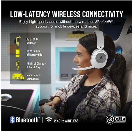 Corsair HS55 Ασύρματο Over Ear Gaming Headset με σύνδεση Bluetooth / USB Λευκό