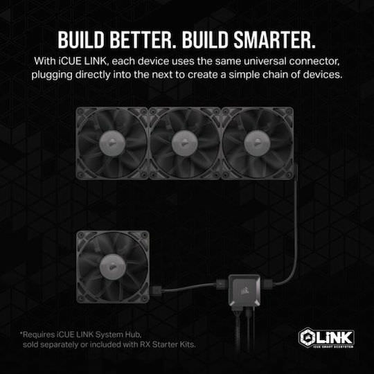 Μέρος του οικοσυστήματος iCUE LINK: Το iCUE LINK είναι το επόμενο άλμα προς τα εμπρός στην κατασκευή υπολογιστών, που εκτείνεται σε ανεμιστήρες, ψυγεία, τροφοδοτικά και πολλά άλλα, επιτρέποντάς σας να συνδέσετε όλα αυτά τα εξαρτήματα μεταξύ τους για καθαρή καλωδίωση, λιγότερη ακαταστασία και ταχύτερη κατασκευή.