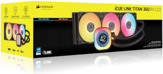 Corsair iCUE LINK TITAN 360 RX LCD Υδρόψυξη Επεξεργαστή Τριπλού Ανεμιστήρα 120mm για Socket AM4/AM5/1700 με RGB Φωτισμό