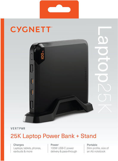 Cygnett Power Bank 25000mAh 100W με 2 Θύρες USB-A και 2 Θύρες USB-C Μαύρο