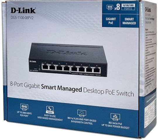 D-Link DGS-1100-08PV2 Managed L2 PoE+ Switch με 8 Θύρες Ethernet