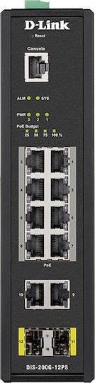D-Link DIS-200G-12PS Managed L2 PoE+ Switch με 8 Θύρες Gigabit (1Gbps) Ethernet και 2 SFP Θύρες