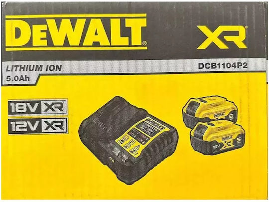 The Dewalt DCB1104P2 Power Pack is a complete energy package that includes a versatile charger and two 18V batteries, each with a capacity of 5.0 Ah. Dewalt batteries provide a reliable power source for power tools and cordless accessories with up to 66% longer lifespan compared to 3.0Ah batteries.
