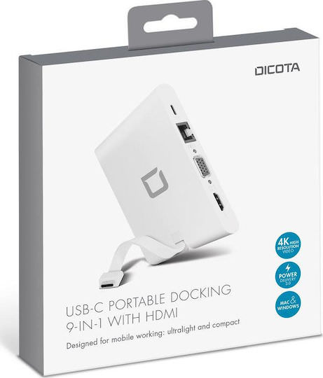 Dicota USB-C Docking Station με HDMI 4K PD Ethernet Λευκό (D31729)