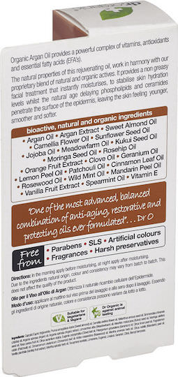Dr.Organic Moroccan Βιολογικό Λάδι Προσώπου για Θρέψη & Ενυδάτωση με Έλαιο Argan 30ml