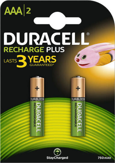 Duracell Recharge Plus Επαναφορτιζόμενες Μπαταρίες AAA Ni-MH 750mAh 1.2V 2τμχ