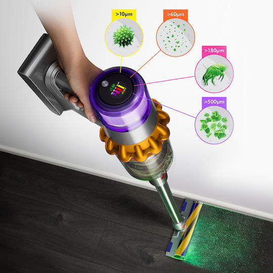 Η Dyson V15 διαθέτει πλήρως σφραγισμένο σύστημα φιλτραρίσματος που παγιδεύει το 99,99% των μικροσκοπικών σωματιδίων έως 0,3 microns. Αυτό σημαίνει ότι όχι μόνο καθαρίζεις το σπίτι, αλλά προστατεύεις και την ποιότητα του αέρα που αναπνέεις.