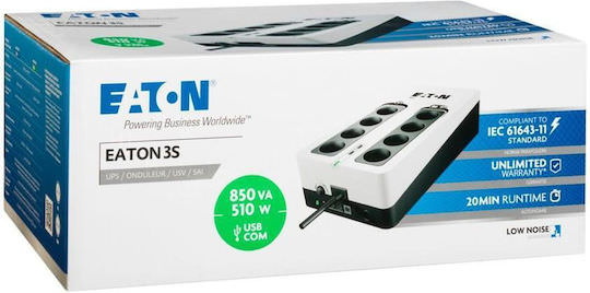Eaton 3S Gen2 UPS Off-Line 850VA 510W με 8 Schuko Πρίζες