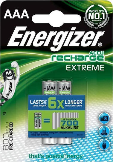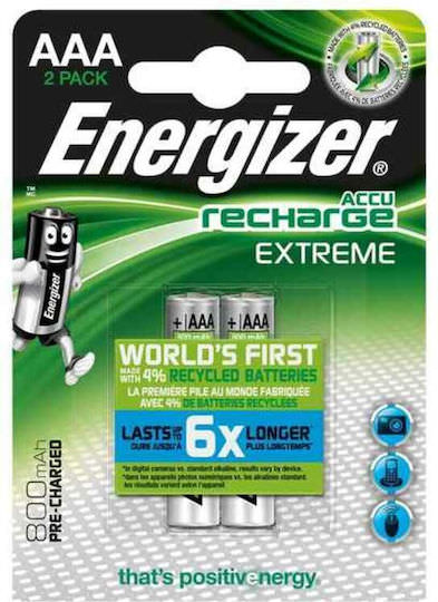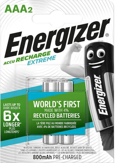 Energizer Extreme Επαναφορτιζόμενες Μπαταρίες AAA Ni-MH 800mAh 1.2V 2τμχ