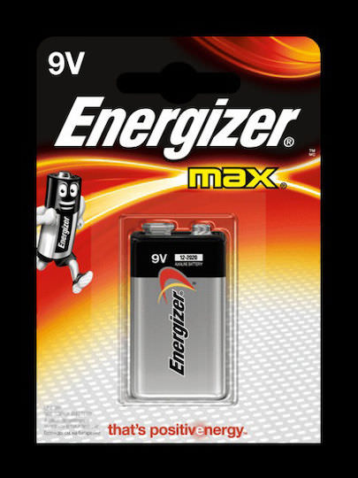 Αλκαλικές μπαταρίες της Energizer μεγέθους 9V, ιδανικές για φακούς κι άλλες οικιακές μικροσυσκευές.