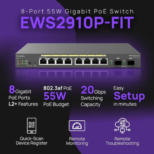 EnGenius EWS2910P-FIT Managed L2 PoE Switch με 8 Θύρες Ethernet και 2 SFP Θύρες