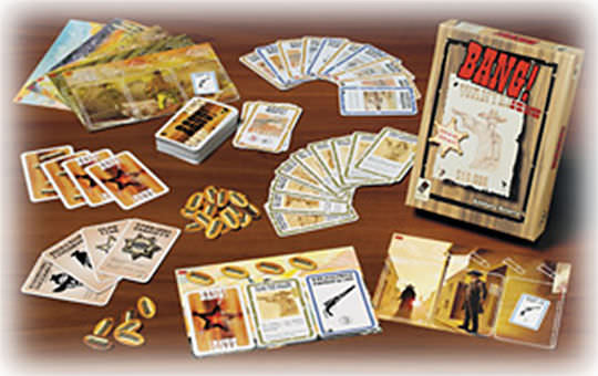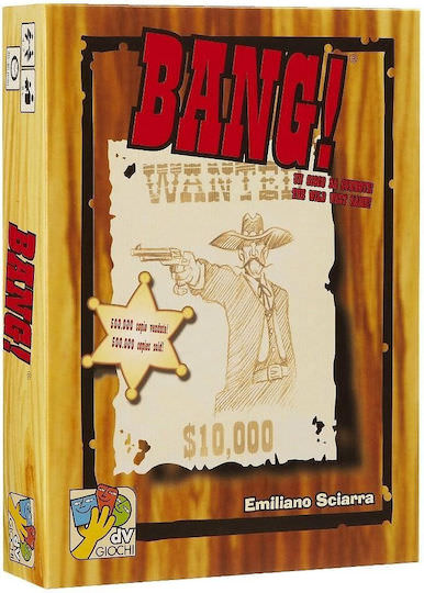 Οι παράνομοι της πόλης κυνηγούν τον Σερίφη, ο Σερίφης κυνηγάει αυτούς που παρανομούν και η καταδίωξη δεν σταματάει πουθενά… οι λιποτάκτες καταστρώνουν μυστικά σχέδια, έτοιμοι να πάρουν είτε το μέρος του Σερίφη είτε των κακών! Πυροβολισμοί ακούγονται από παντού και οι σφαίρες πέφτουν ασταμάτητα στον αέρα! Ανάμεσα στο πλήθος που πυροβολεί ένας είναι ο βοηθός του Σερίφη, έτοιμος να θυσιαστεί για να επιβληθεί η τάξη και να κυριαρχήσει η εξουσία του Σερίφη στη πόλη ή μήπως όχι? Μπορεί να λιποτακτήσει και να πάει με το μέρος των παράνομων, των κακών της πόλης? Ανάμεσα τους υπάρχει και εάν αδίστακτος εγκληματίας, που προσπαθεί με κάθε τρόπο να τον σκοτώσει και να τον παραδώσει στους κακούς της πόλης! Εάν θέλετε και ‘σεις να ανακαλύψετε ποιος είναι ποιος, απλώς τραβήξτε τυχαία μια κάρτα και το “Bang!” είναι έτοιμο να ξεκινήσει! Το “Bang!” (2002), είναι ένα καρτοπαίχνιδο μπλόφας και ίντριγκας, που αναζωπυρώνει ένα κλασικό παραδοσιακό κυνήγι, ανταλλαγής πυροβολισμών που διαδραματίζεται στην Αμερική.