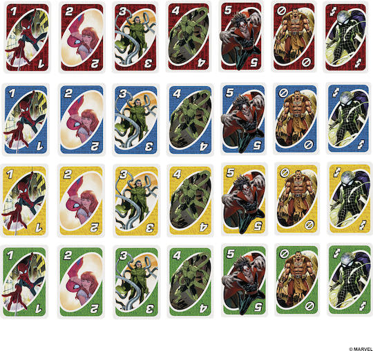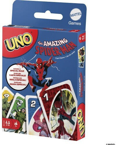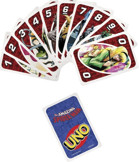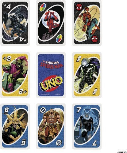 Οι παίκτες του παιχνιδιού UNO θα λατρέψουν τα χαρακτηριστικά γραφικά εμπνευσμένα από τους χαρακτήρες της σειράς κόμικς της Marvel The Amazing Spider-Man. Το παιχνίδι ταιριάζει με το κλασικό παιχνίδι καρτών, όπου οι παίκτες ταιριάζουν χρώματα και αριθμούς για να ξεφορτωθούν όλες τις κάρτες τους.