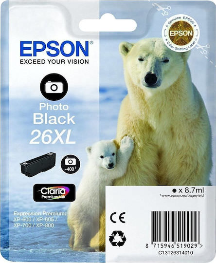 Epson 26XL Γνήσιο Μελάνι Εκτυπωτή InkJet Photo Μαύρο (C13T26314010 C13T26314012)