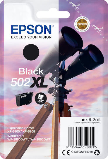 Epson 502XL Γνήσιο Μελάνι Εκτυπωτή InkJet Μαύρο (C13T02W14010)