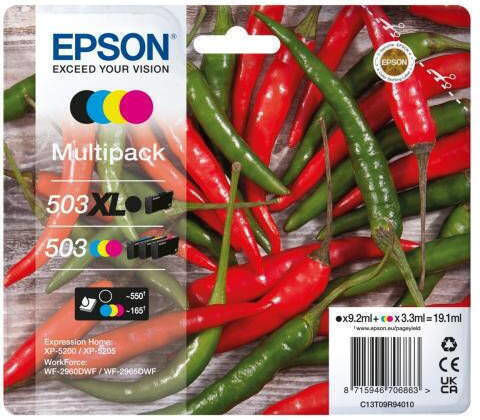 Epson 503XL Γνήσιο Πακέτο 4 Μελανιών Εκτυπωτή InkJet Κίτρινο / Κυανό / Ματζέντα / Μαύρο (C13T09R64010)