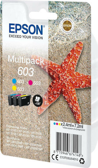 Πακέτο 3 μελανιών τεχνολογίας inkjet της EPSON που συνδυάζει τα: 603 Cyan, 603 Magenta & 603 Yellow.