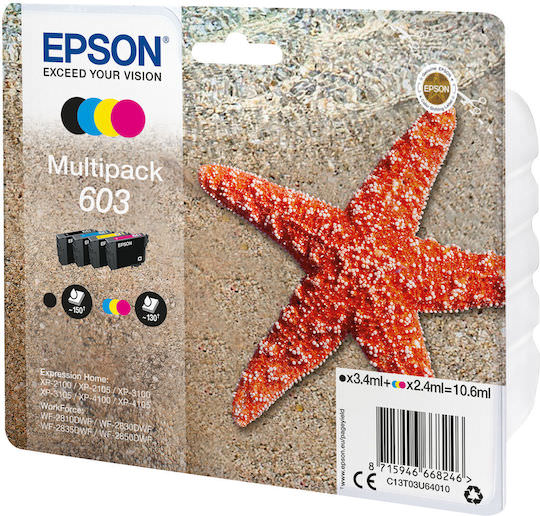 Epson 603 Γνήσιο Πακέτο Μελανιών Εκτυπωτή InkJet Πολλαπλό (Color) (C13T03U64020)