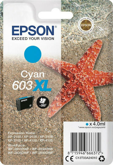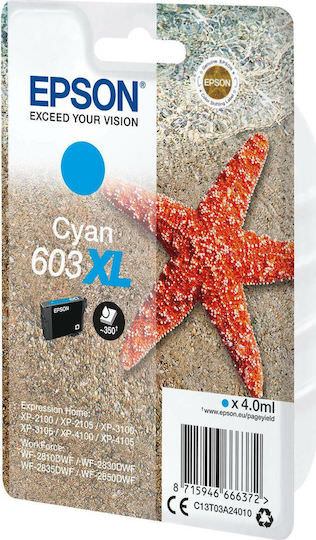 Epson 603XL Γνήσιο Μελάνι Εκτυπωτή InkJet Κυανό (C13T03A24010)