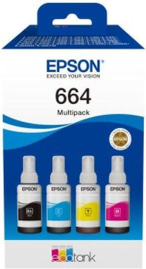Epson 664 Γνήσιο Πακέτο 4 Μελανιών Εκτυπωτή InkJet Κίτρινο / Κυανό / Ματζέντα / Μαύρο (C13T664640)