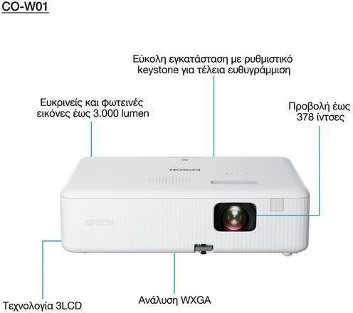 Epson CO-W01 Projector 3LCD HD Απλής Λάμπας με Ενσωματωμένα Ηχεία