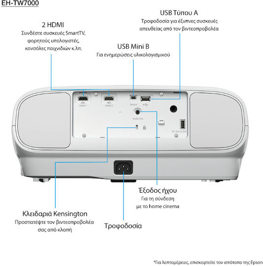 Epson EH-TW7000 3D Projector 3LCD 4K Ultra HD Απλής Λάμπας