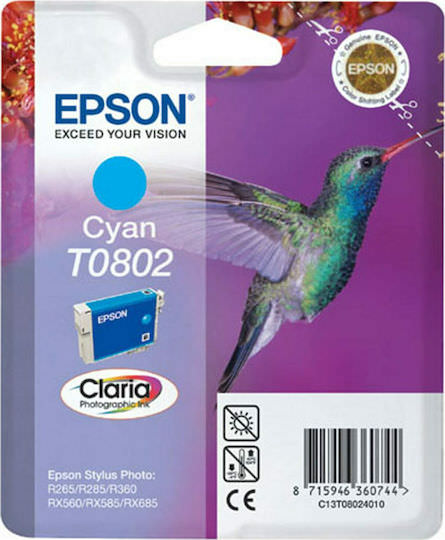 Epson T0802 Γνήσιο Μελάνι Εκτυπωτή InkJet Κυανό (C13T08024010 C13T08024020 C13T08024011)