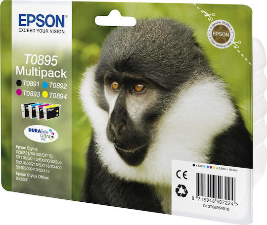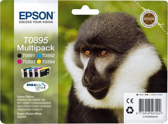 Epson T0895 Γνήσιο Πακέτο 4 Μελανιών Εκτυπωτή InkJet Κίτρινο / Κυανό / Ματζέντα / Μαύρο (C13T08954010)