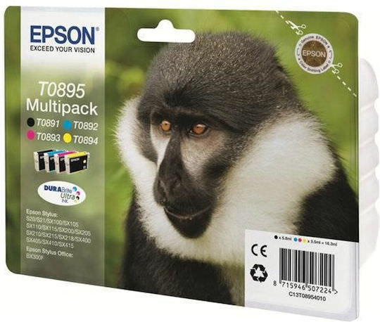 Epson T0895 Γνήσιο Πακέτο 4 Μελανιών Εκτυπωτή InkJet Μαύρο / Πολλαπλό (Color) (C13T08954020)