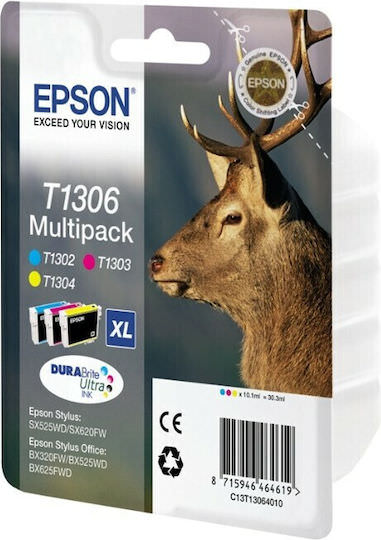 Epson T1306 Γνήσιο Πακέτο 3 Μελανιών Εκτυπωτή InkJet Κίτρινο / Κυανό / Ματζέντα (C13T13064010 C13T13064012)