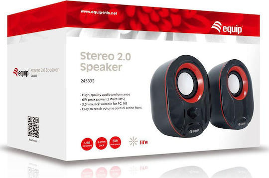 Equip Stereo 2.0 Ηχεία Υπολογιστή 2.0 με Ισχύ 3W Κόκκινα