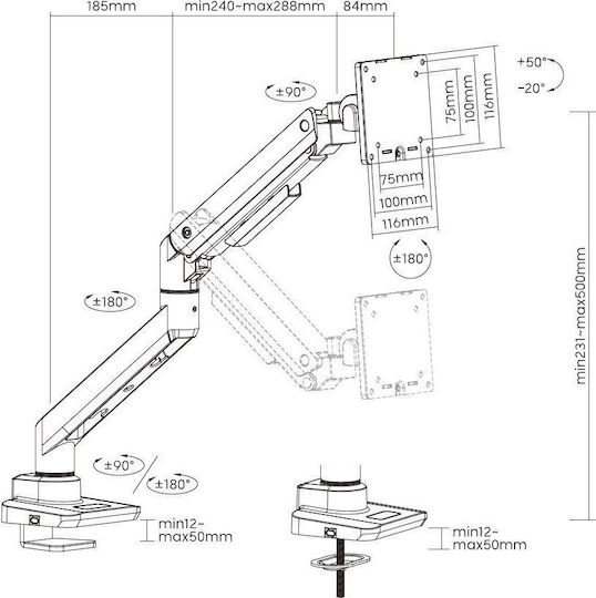 – Vesa Mount: 75 x 75 mm, 100 x 100 mm