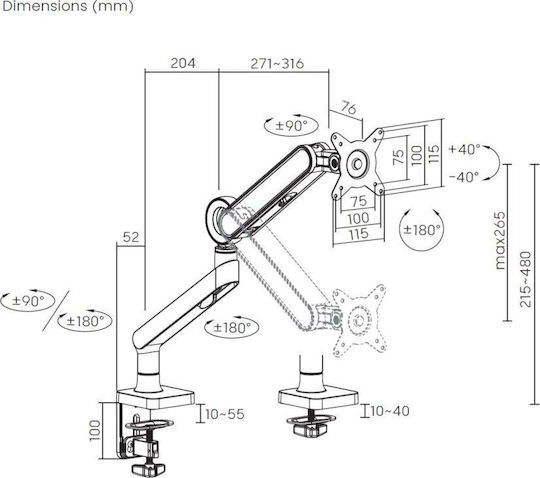 Πρότυπο VESA: 75 x 75 mm, 100 x 100 mm