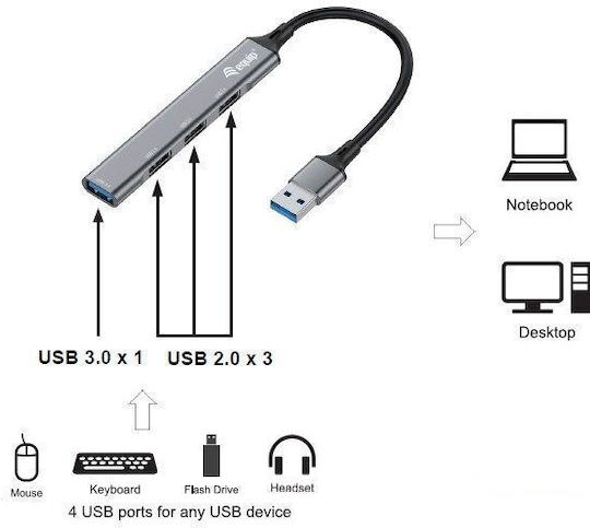 USB Hub με 4 θύρες USB 3.0/2.0.