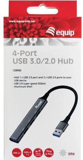 Equip USB 3.0 Hub 4 Θυρών με σύνδεση USB-A Γκρι