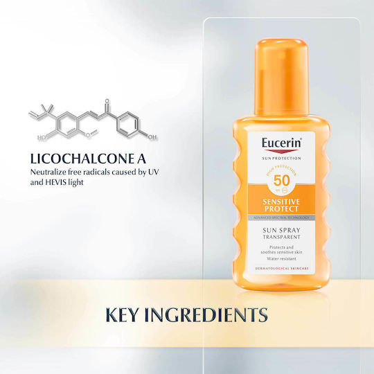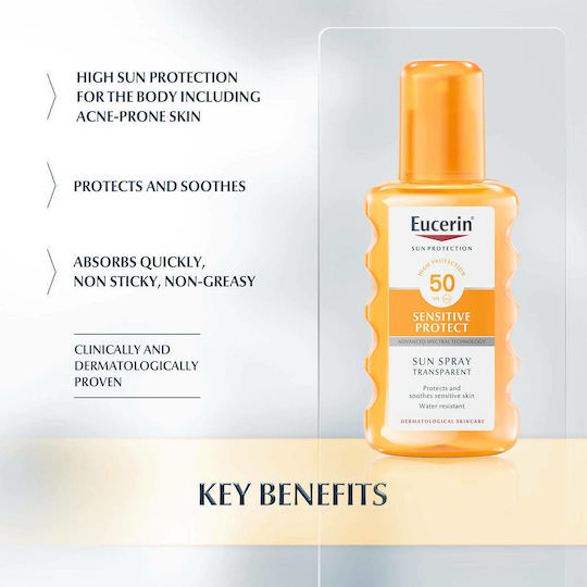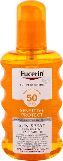 Eucerin Sun Transparent Sensitive Protect Αδιάβροχη Αντηλιακή Λοσιόν για το Σώμα SPF50 σε Spray 200ml