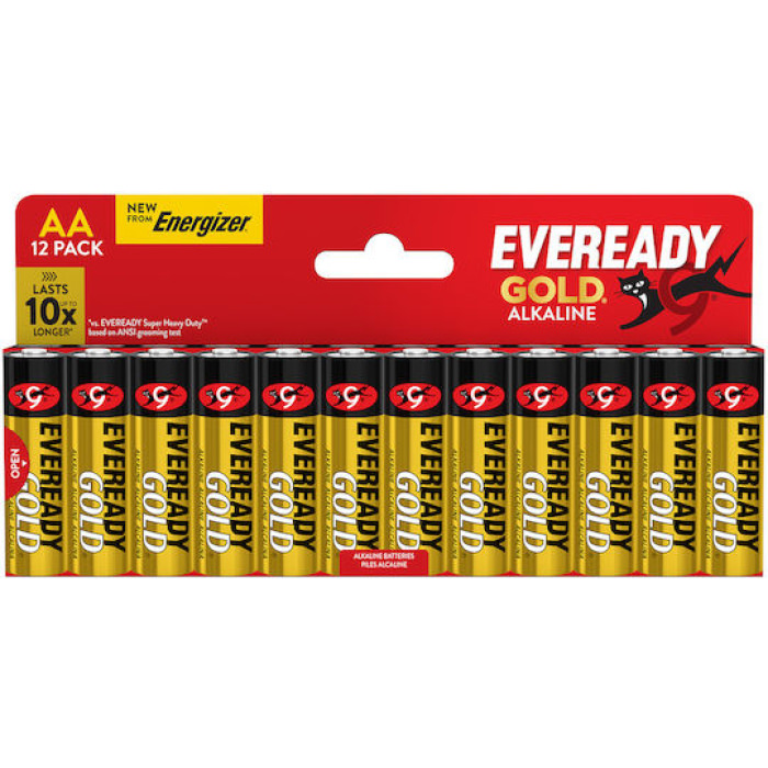 Αλκαλική μπαταρία Eveready Gold ΑA-LR6 1.5V, σε blister 12 τεμαχίων.